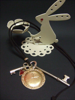 大きな鍵と時計チャームのネックレスです(^ω^) 紐は長さが調整できますよ~。