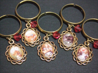 ハコウリさんには既に幾つか納品してきたんですが、前回のにっきに書いてた小さいカメオ風樹脂のリングです~。写真はぶら下がりタイプですが、張り付きタイプもありますよ~。